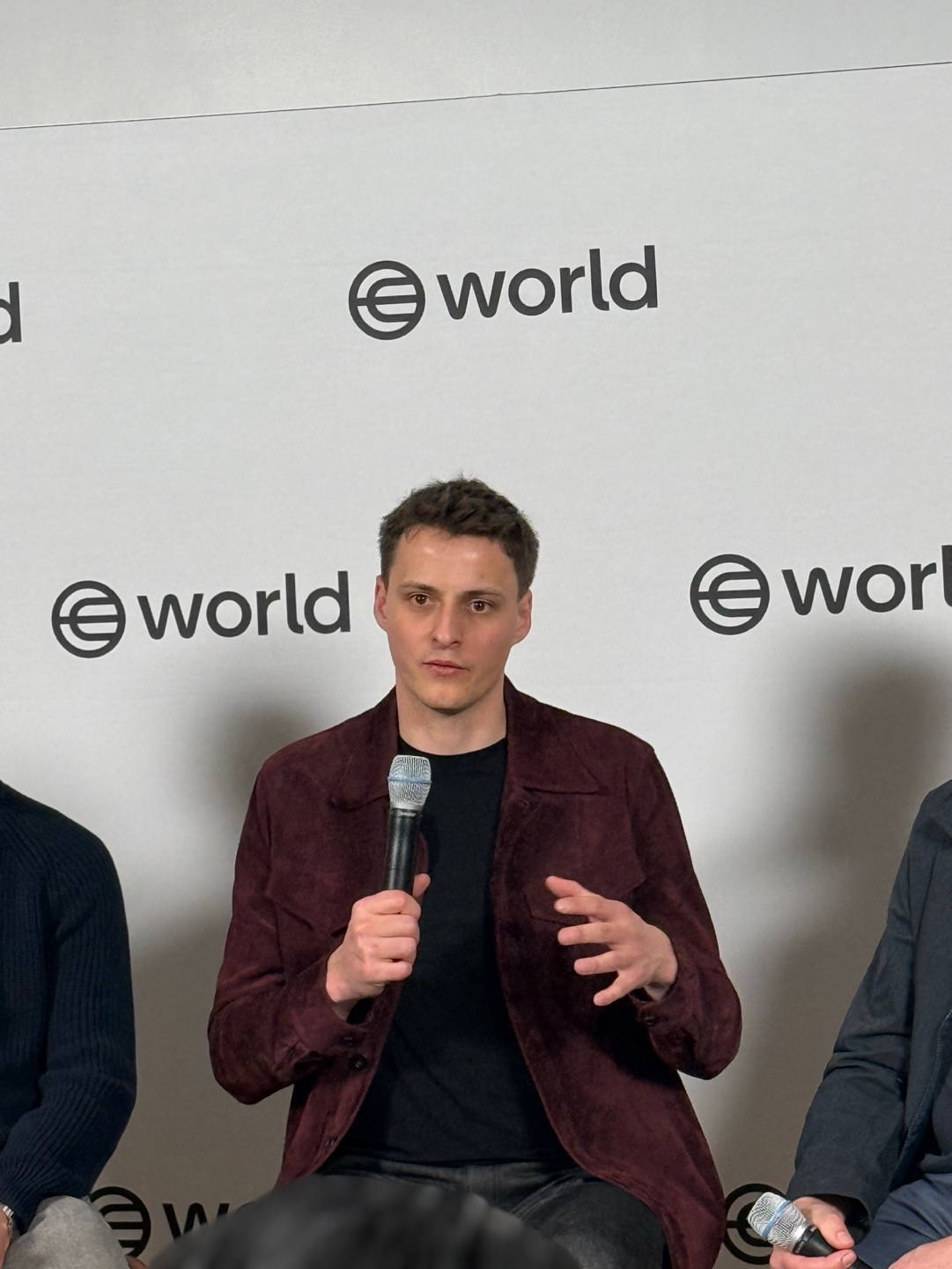 월드코인 개발사 '툴스 포 휴머니티'(Tools for Humanity·TFH) 알렉스 블라니아 CEO가 4월 30일(현지시간) 미국 샌프란시스코에서 개최된 월드코인 '앳 라스트'(At Last) 행사 후 열린 기자 간담회에서 발언하고 있다. ⓒ사진=홍창기 기자